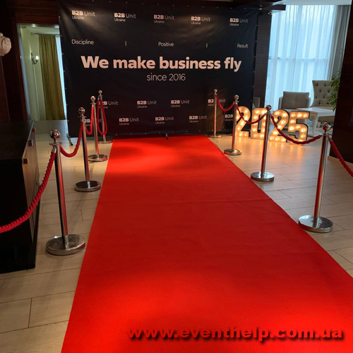 Но главное, чтобы бы мероприятие прошло на наивысшем уровне и запомнилось вашим гостям надолго, вам не нужно вкладывать большие средства. Аренда красной дорожки с наименьшими денежными и временными затратами – вот, что вам предлагает компания Event Help. Наши специалисты возьмут на себя все хлопоты по доставке и установке, а вам остается только с нетерпением ждать начала торжества.