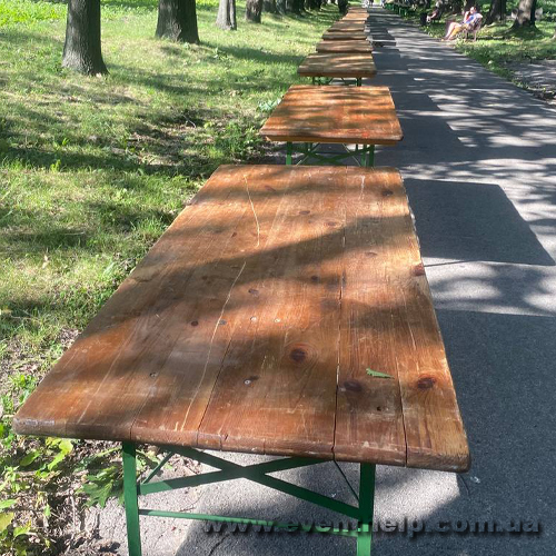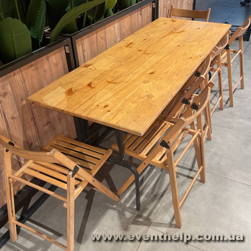 Оренда розкладних дерев'яних столів відмінно підходять для заходів, які проводяться на природі або масових заходів. Стіл складаний на прокат зарекомендував себе як меблі, яка використовується в основному на виїзних заходах, так як вони мають ідеальні характеристики - легкістю в переміщенні, стійкістю, витривалістю і що не менш важливо, вони зручні при транспортування.