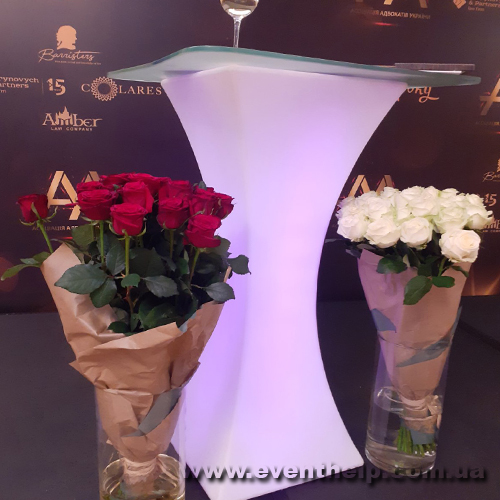 Доба оренди барного столу з підсвічуванням становлять 500 грн, а в нашому розпорядженні є відразу два таких неординарних предмета меблів.