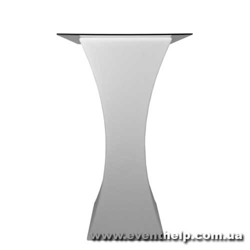 Стільниця світиться столу, виготовлена зі скла, має розмір 65 х 65 см, а його висота становить 110 см. Такі параметри зручні як для фуршету, так і для посадки, наприклад, зі зручним і світяться пуфами в оренду.